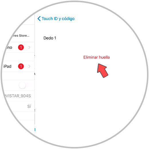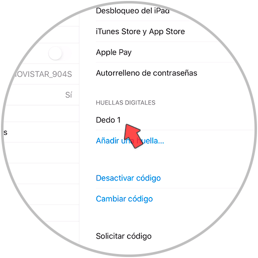 Ahora pulsa sobre la huella que quieres eliminar para ver sus opciones.