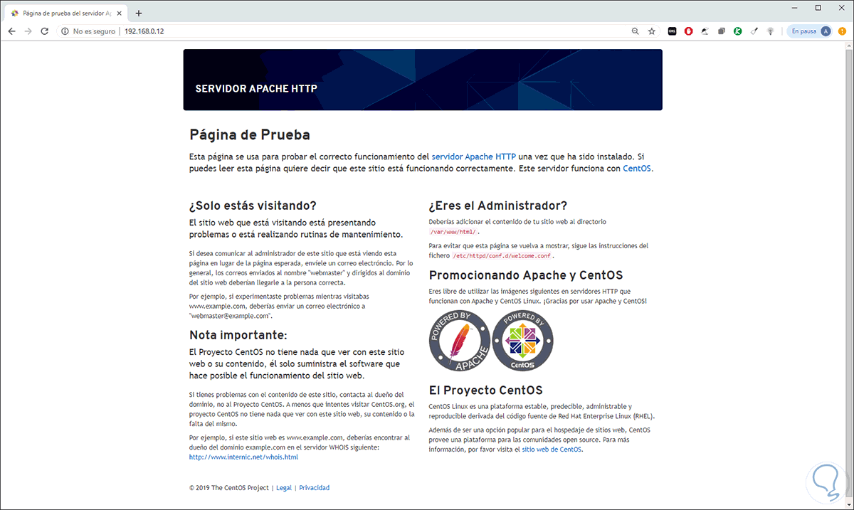http://Dirección_IP_CentOSDebemos ver lo siguiente: