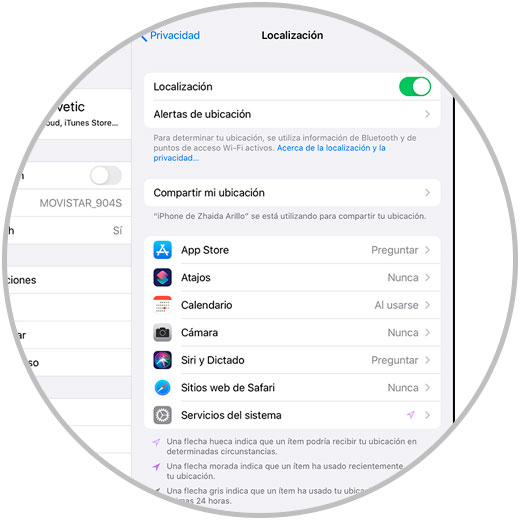 En la parte inferior podrás seleccionar si activas la localización si das acceso a la misma a algunas aplicaciones del iPad como son: