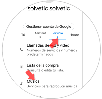 Ahora pulsa sobre la pestaña de "Servicios" en la parte superior y entra dentro de el apartado de "Música"