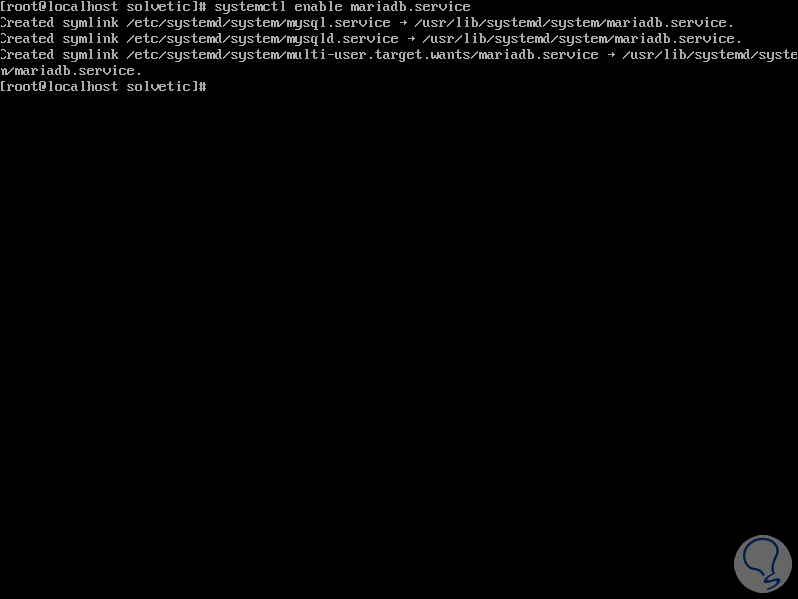 Procedemos a habilitar el servicio de MariaDB ejecutando la siguiente línea: