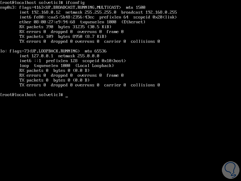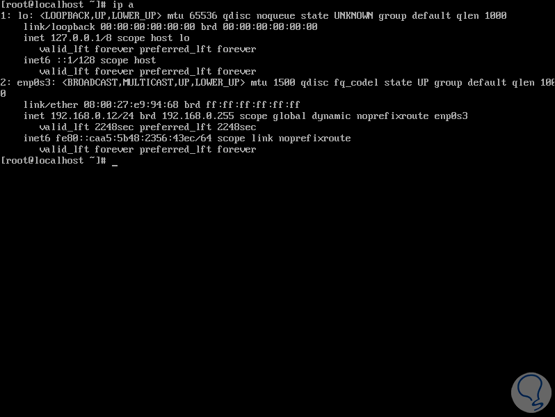 systemctl restart networkPara comprobar que los cambios se hayan aplicado ejecutando lo siguiente: