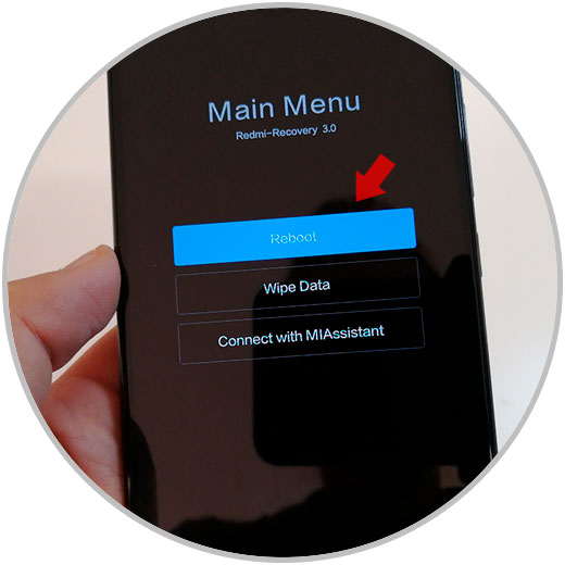 Tu Redmi Note 8 te mostrará el menú de recuperación. Utiliza las teclas de volumen para moverte por las diferentes opciones y la tecla de “Power” para confirmar. Selecciona “Reboot”.