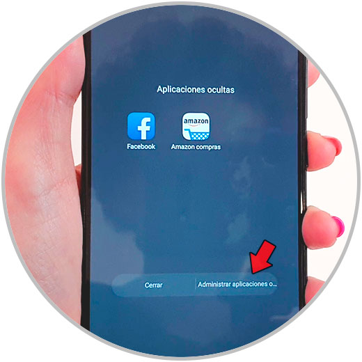 Aquí buscaremos la opción de “Aplicaciones ocultas” y la activaremos. Para gestionarlo pulsamos en “Administrar aplicaciones ocultas”.