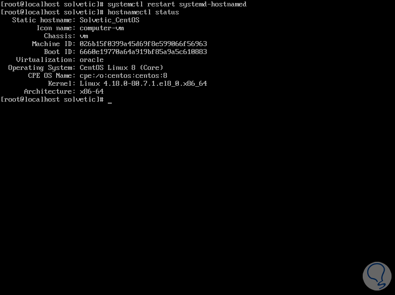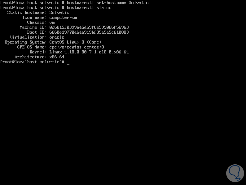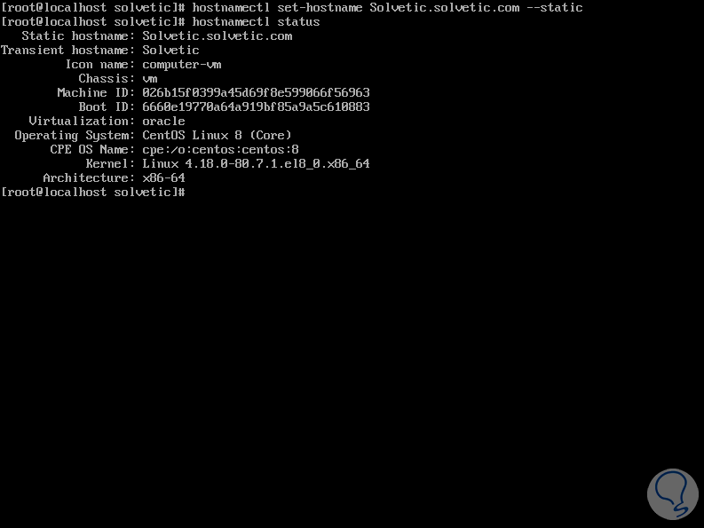 hostnamectl set-hostname Solvetic.solvetic.com –static
