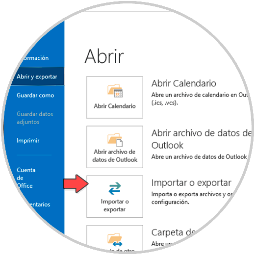 Para este método iremos al menú Archivo y allí nos dirigimos a la sección “Abrir y exportar”: