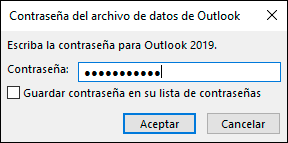 Este es un paso opcional y luego de esto damos clic en Aceptar para iniciar la exportación del archivo .pst de Outlook 2019 y si hemos asignado contraseña debemos ingresarla de nuevo: