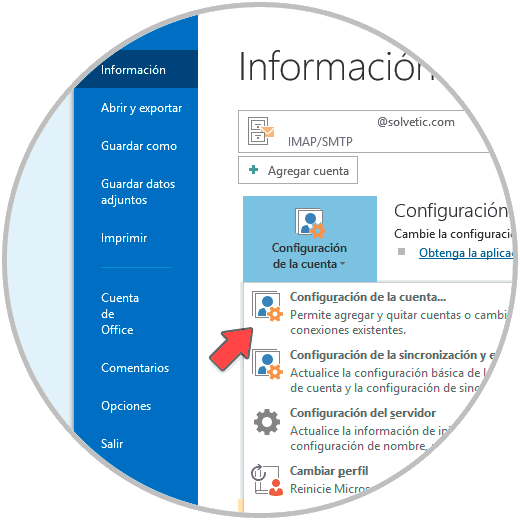 También podemos ir a la ruta de Archivo – Configuración de la cuenta dentro de Outlook.