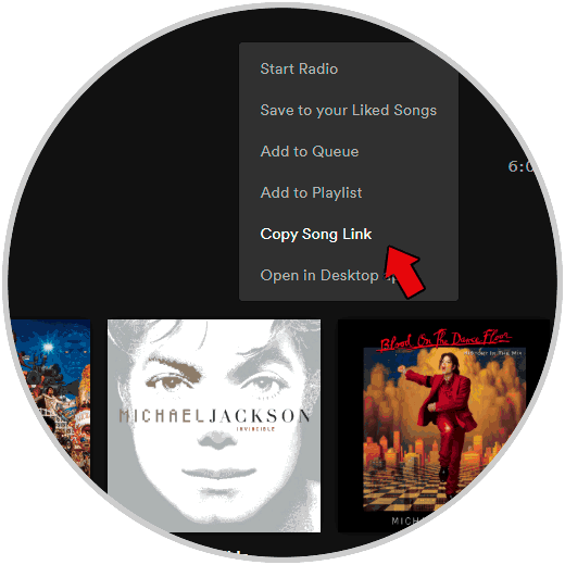 Para corregir esto damos clic en el ícono de tres puntos junto a la canción y luego seleccionamos “Compartir - Copiar enlace de canción":