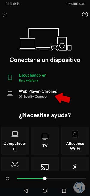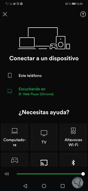 Al dar clic allí podremos observar en cuales dispositivos estamos conectados y donde se está reproduciendo la canción en ese momento: