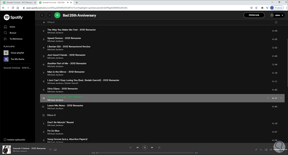 Ahora basta con pulsar sobre la opción “Web Player” para que se transfiera la reproducción al navegador:
