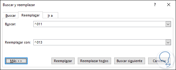 - En el campo Reemplazar con ingresar ^013
