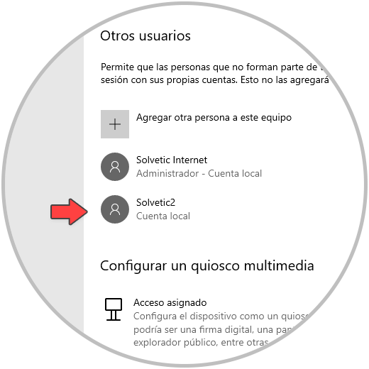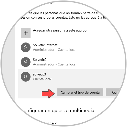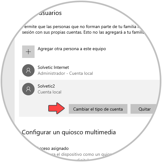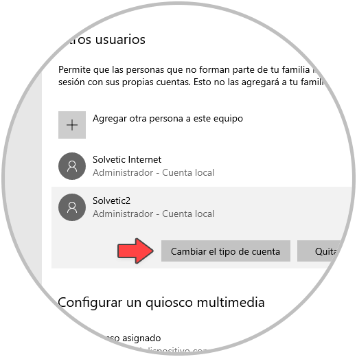 5. Crear o cambiar una cuenta local a administrador desde Configuración en Windows 10