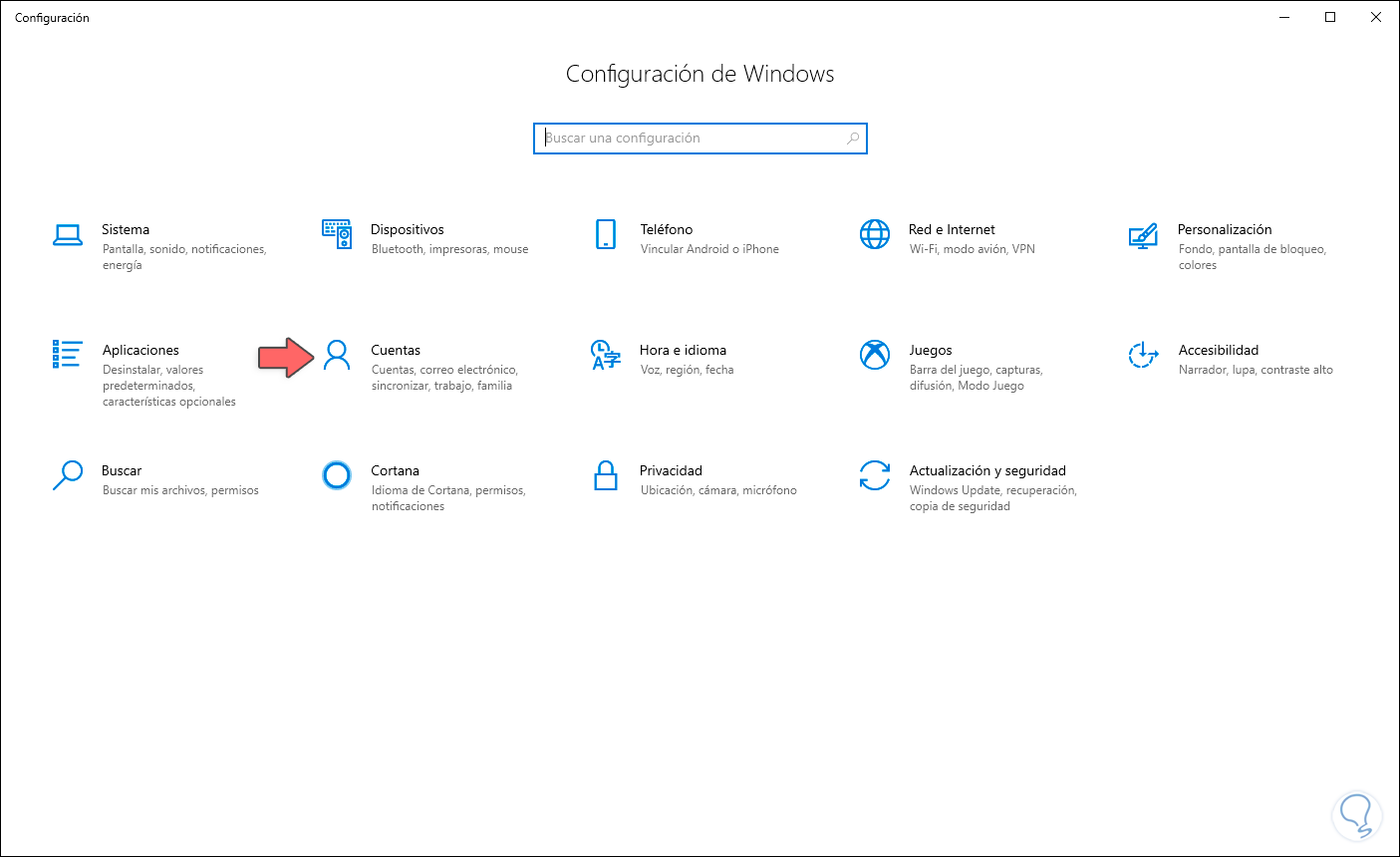 Allí seleccionamos la categoría “Cuentas” y en la ventana abierta iremos a la sección “Familia y otros usuarios”: