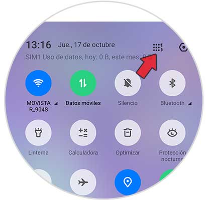 Ahora debes desplazar el centro de control desde la pantalla principal. Selecciona el símbolo de los cuadradillos de la parte superior.