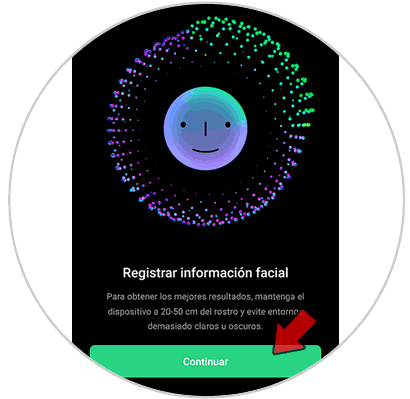 Lo siguiente que debes hacer es poner la cara en el círculo que aparece en la pantalla hasta que quede registrada