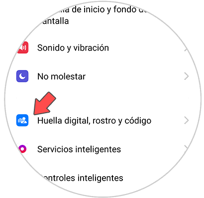 Una vez dentro de lo ajustes, tienes que entrar en el apartado que pone "Huella digital, rostro y código"