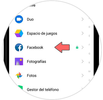 En la siguiente ventana nos aparecerán las aplicaciones que queremos bloquear. Después vamos a buscar la aplicación que queremos ocultar y pulsamos sobre ella. En este caso queremos ocultar Facebook.