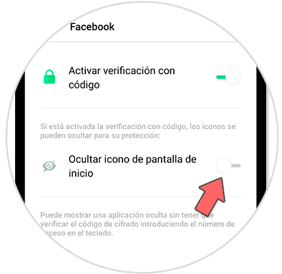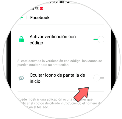 Activamos como vemos la verificación de código para que podamos activar también “Ocultar icono de pantalla de inicio”. Actívala.