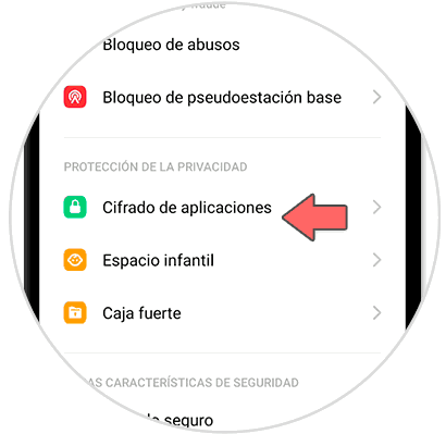 Aquí buscaremos la opción de “Cifrado de aplicaciones”.