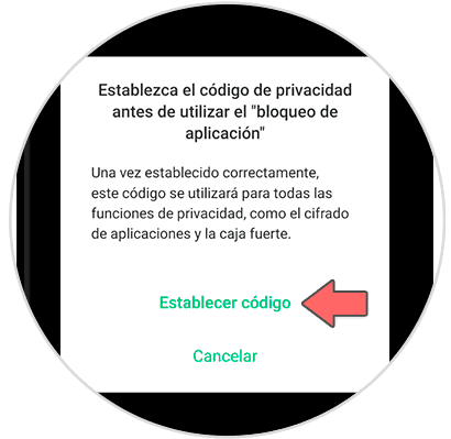 Tienes ahora que establecer un código de privacidad para la función de bloquear la aplicación.