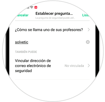 Intorducimos más información de seguridad como una pregunta de seguridad e incluso una dirección de correo vinculada.