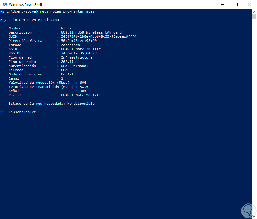 5. Ver intensidad señal Wi-Fi desde PowerShell en Windows 10