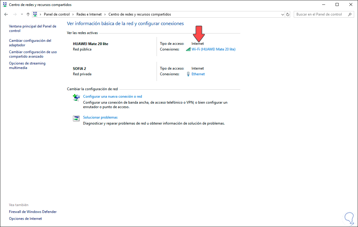 2. Ver intensidad señal Wi-Fi desde Panel de Control en Windows 10