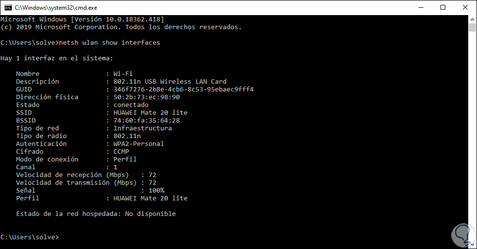 4. Ver intensidad señal Wi-Fi desde Símbolo del sistema en Windows 10