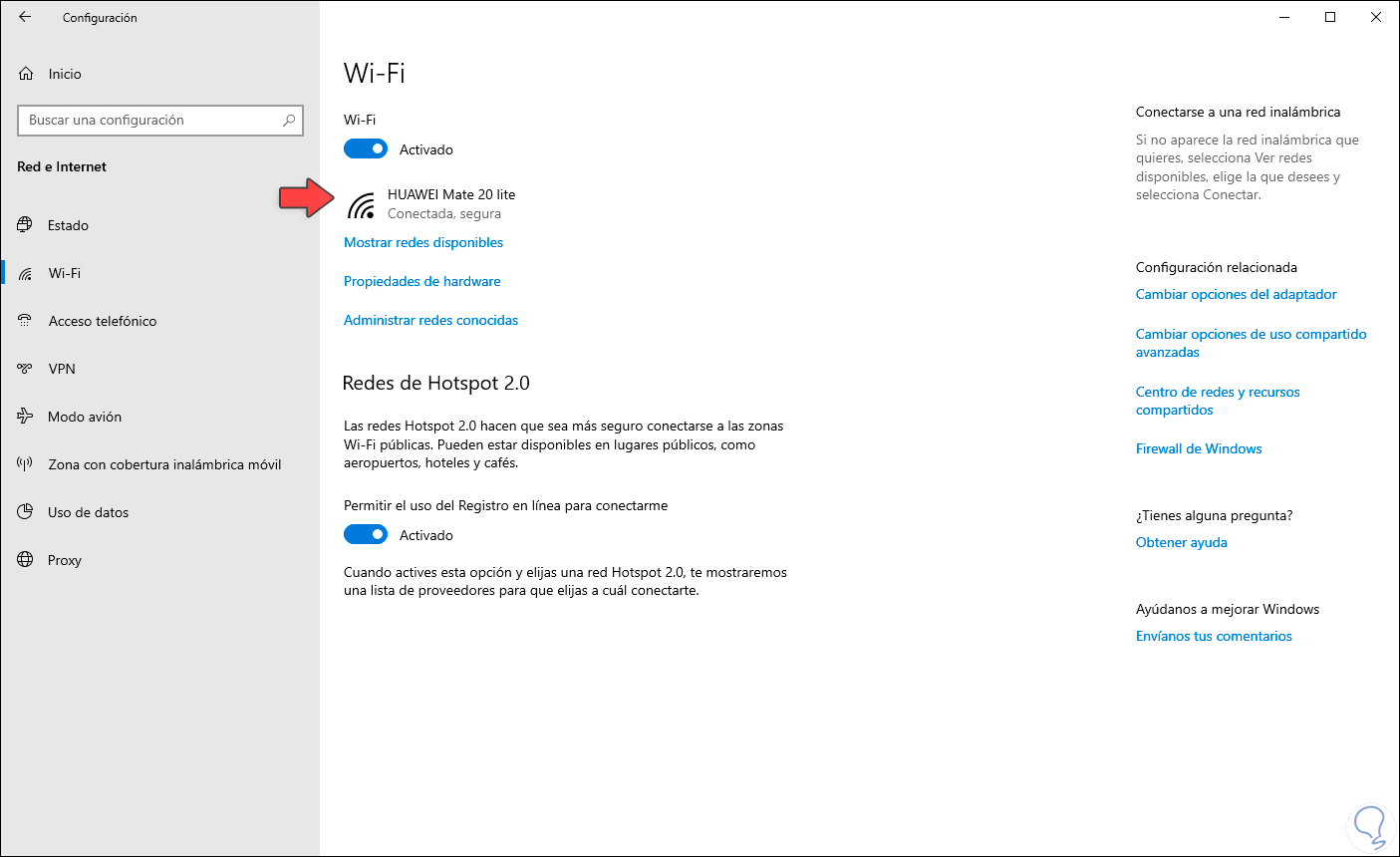 La misma información encontramos si vamos a la sección “Wi-FI”. Allí encontramos el nombre de la red, así como la intensidad de la señal de la misma.