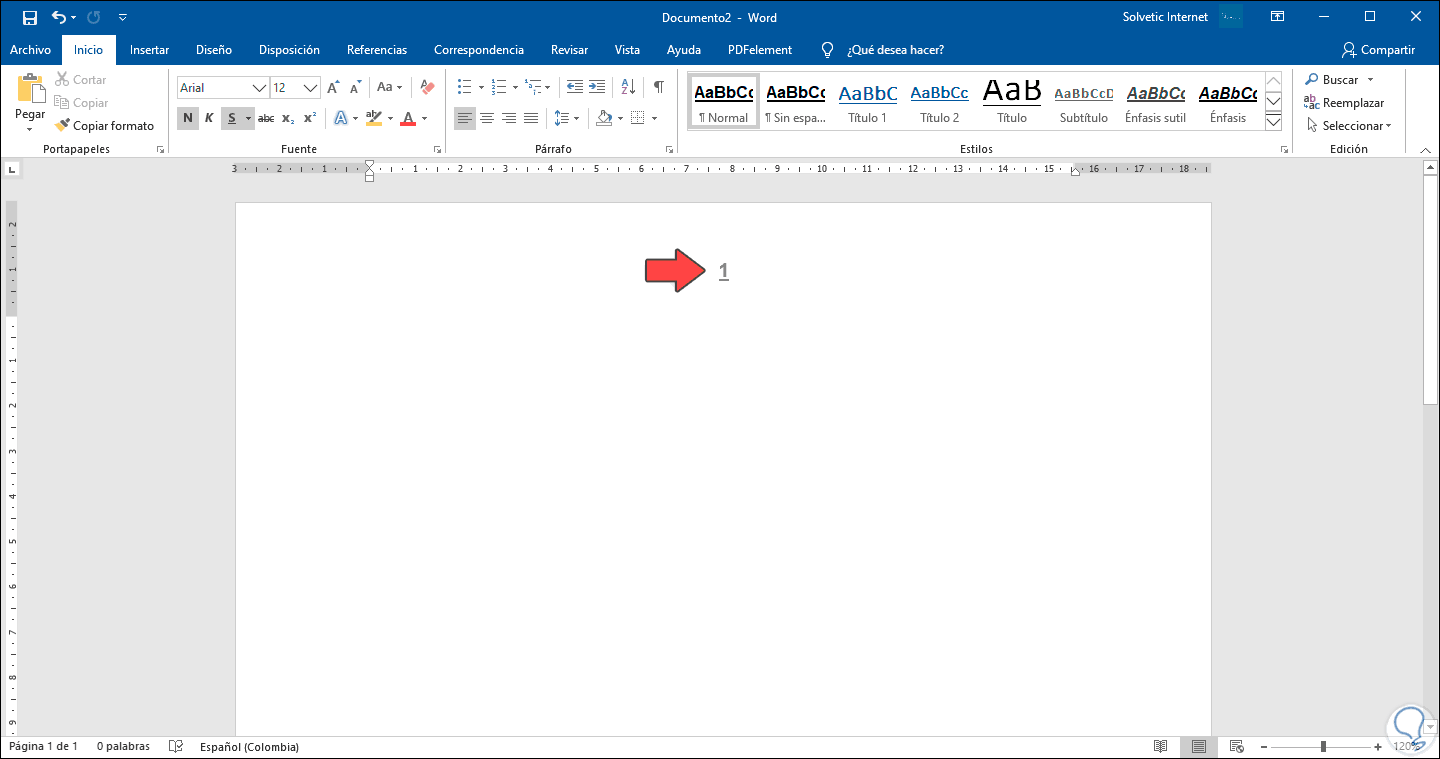 Damos clic en Aceptar y de aquí en adelante la numeración será arábiga: