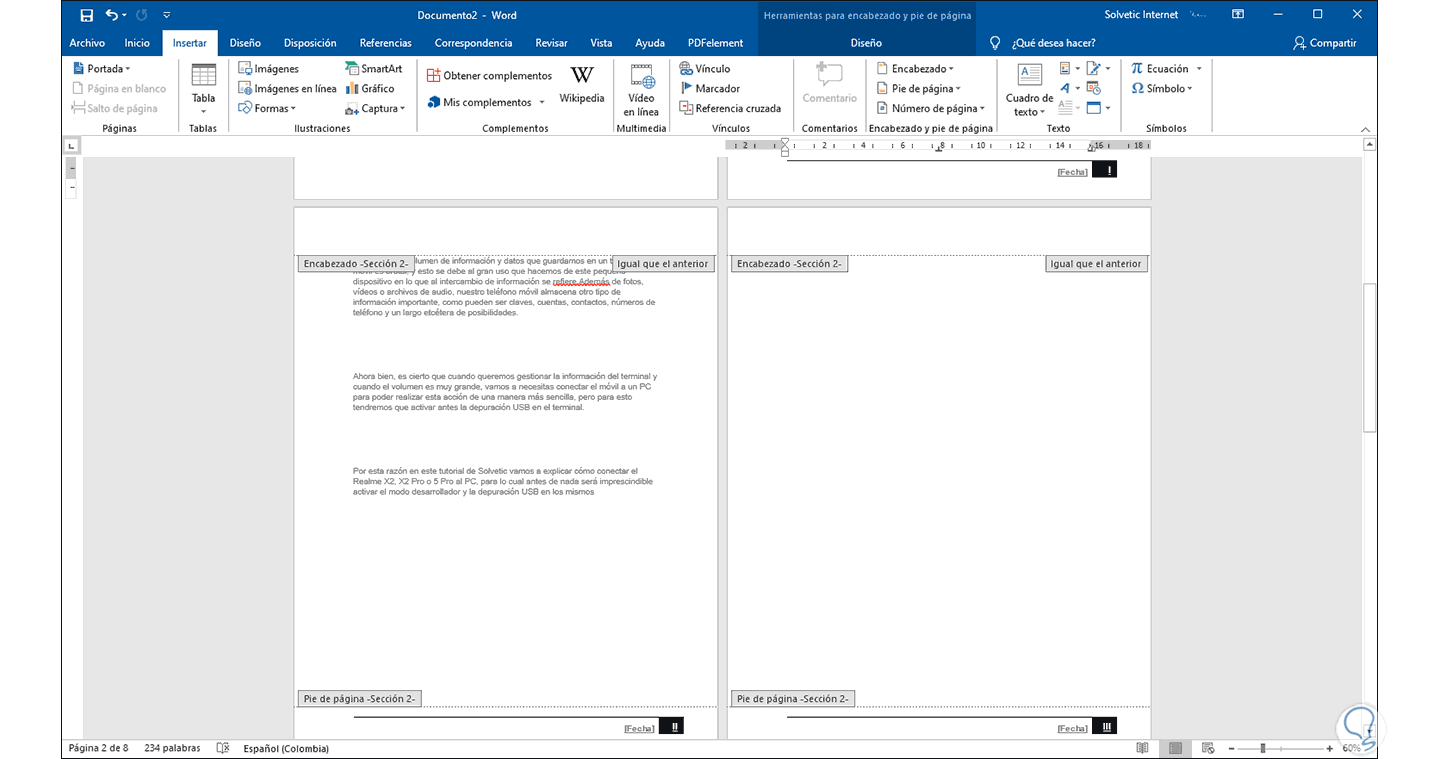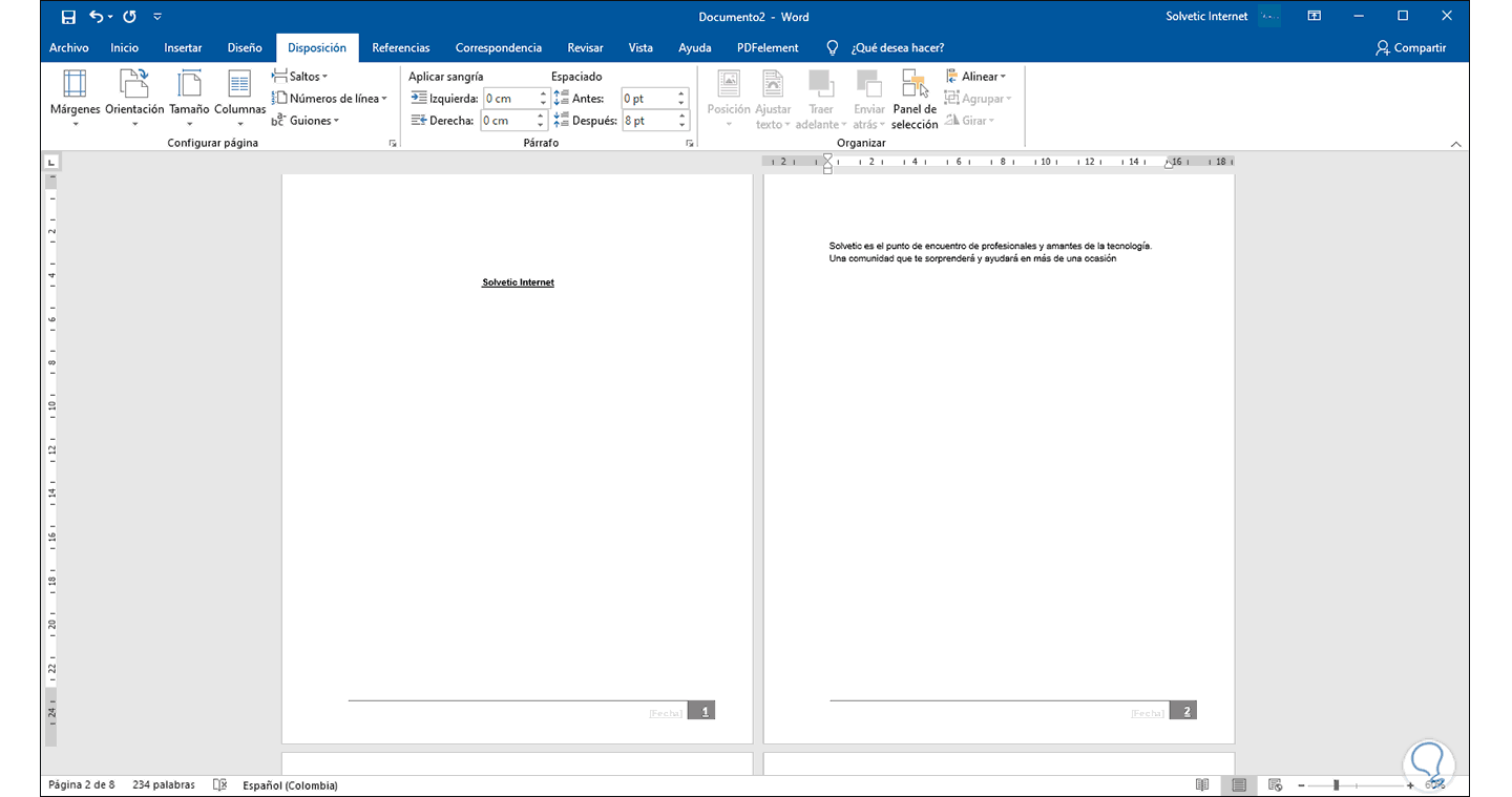 Al realizar esto es normal que el contenido de la página 2 se mueva a la tercera página: