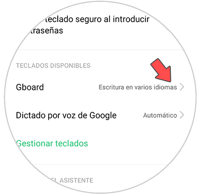 Ahora vas a ver varias opciones. En este caso tienes que dirigirte al apartado de “teclados disponibles” y entrar dentro de “Gboard”.