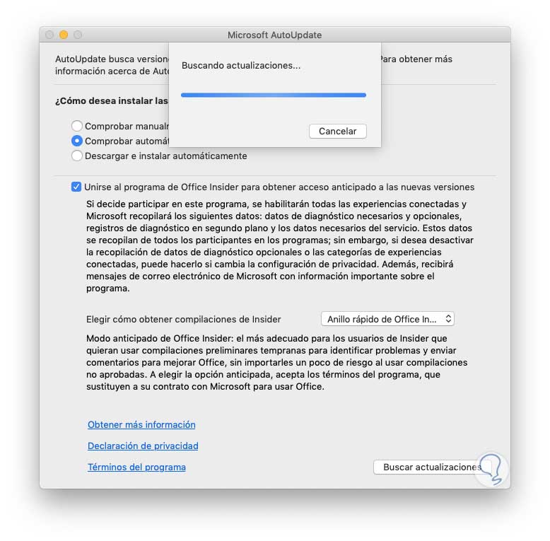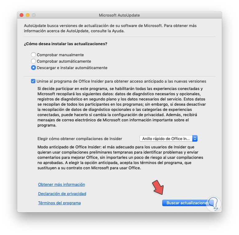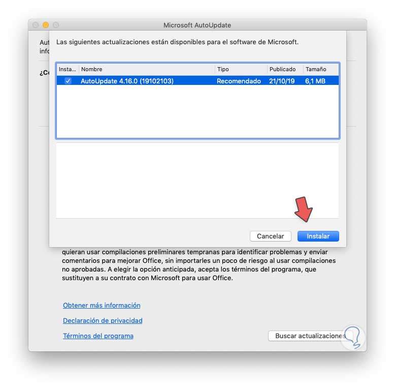 Al igual que Windows, en macOS podemos recurrir a la opción de actualizar Microsoft Word para corregir los errores desplegados en su apertura