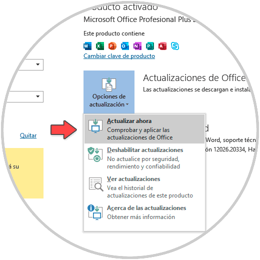 Para validar esto, en Microsoft Word, vamos al menú Archivo y allí seleccionamos Cuenta ubicada en la parte inferior, allí damos clic sobre el campo “Opciones de actualización” y seguidamente seleccionamos “Actualizar ahora”: