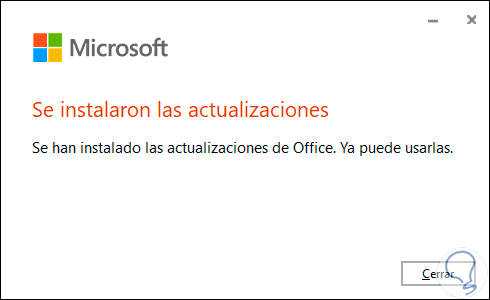 Cuando este proceso llegue a su fin veremos que Microsoft Word ha sido actualizado: