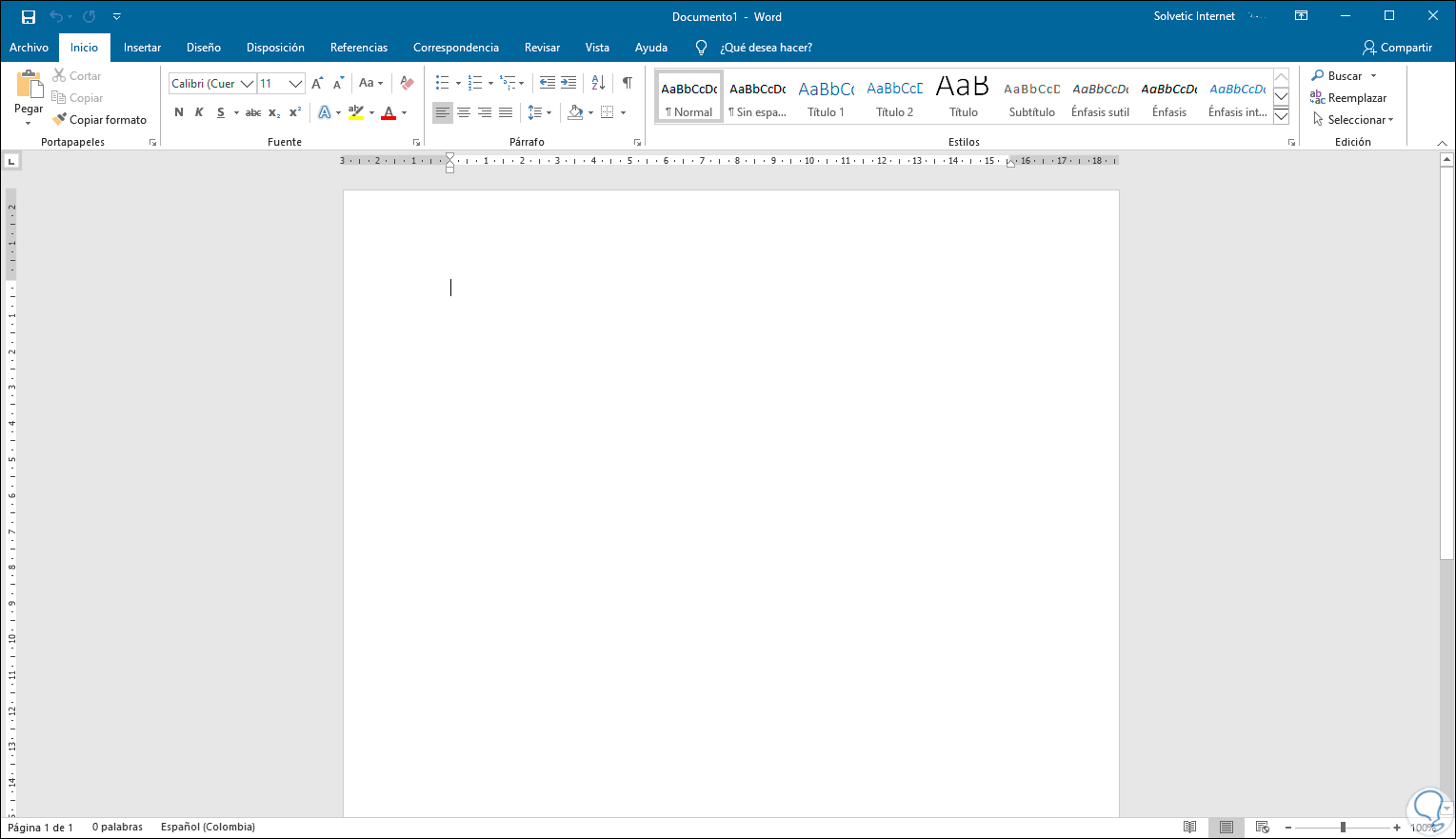 Pulsamos la tecla Enter o Aceptar y Microsoft Word será cargado sin complementos ni plantillas: