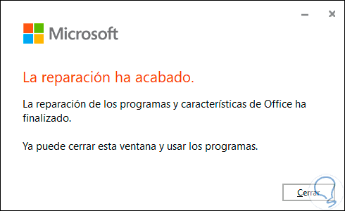Cuando el proceso finalice veremos lo siguiente. Damos clic en Cerrar para completar el proceso.