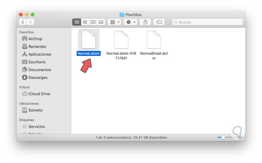 Allí pulsamos en el botón Ir y accederemos a la siguiente carpeta. Seleccionamos el archivo “Normal.dotm” y lo movemos al escritorio de macOS. Ahora