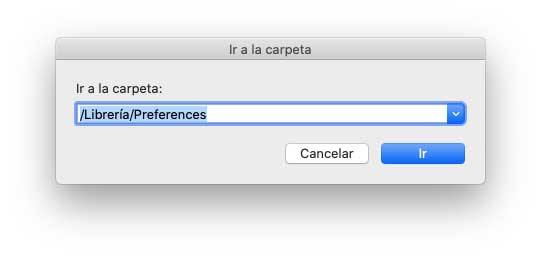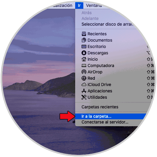 , de nuevo vamos al menú Ir / Ir a la carpeta y allí ingresaremos lo siguiente: