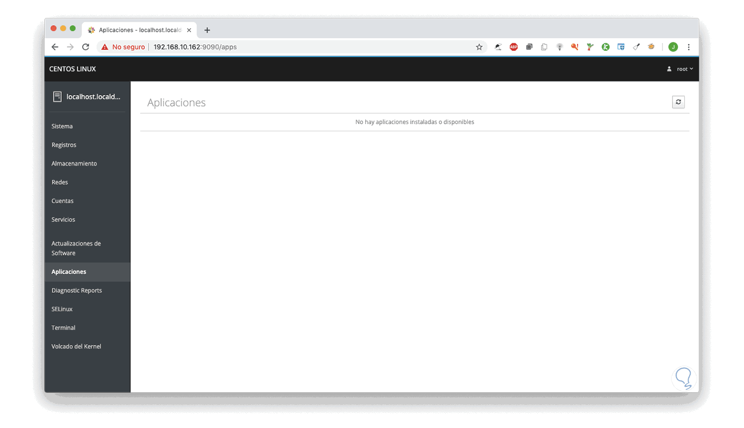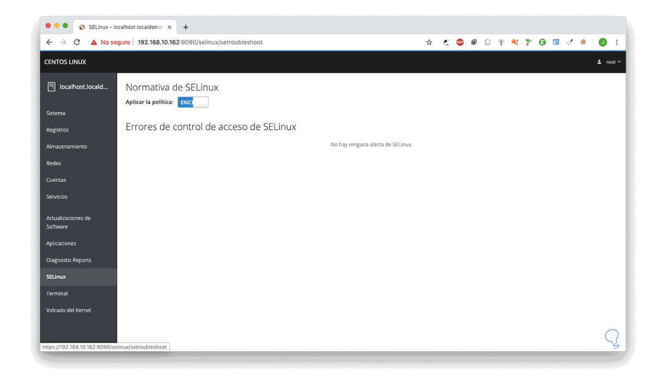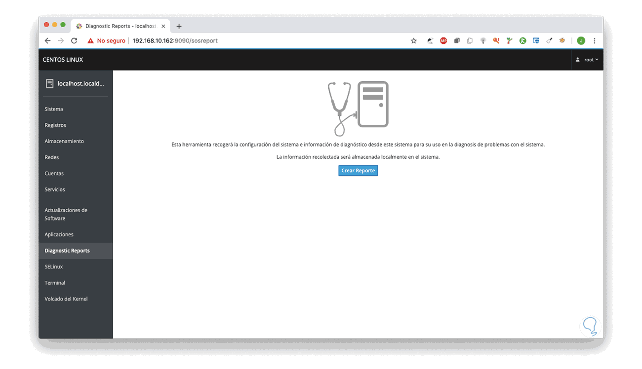 Por defecto, cuando se instala CentOS por primera vez verás que se incrusta un mensaje para habilitar el servicio Cockpit: