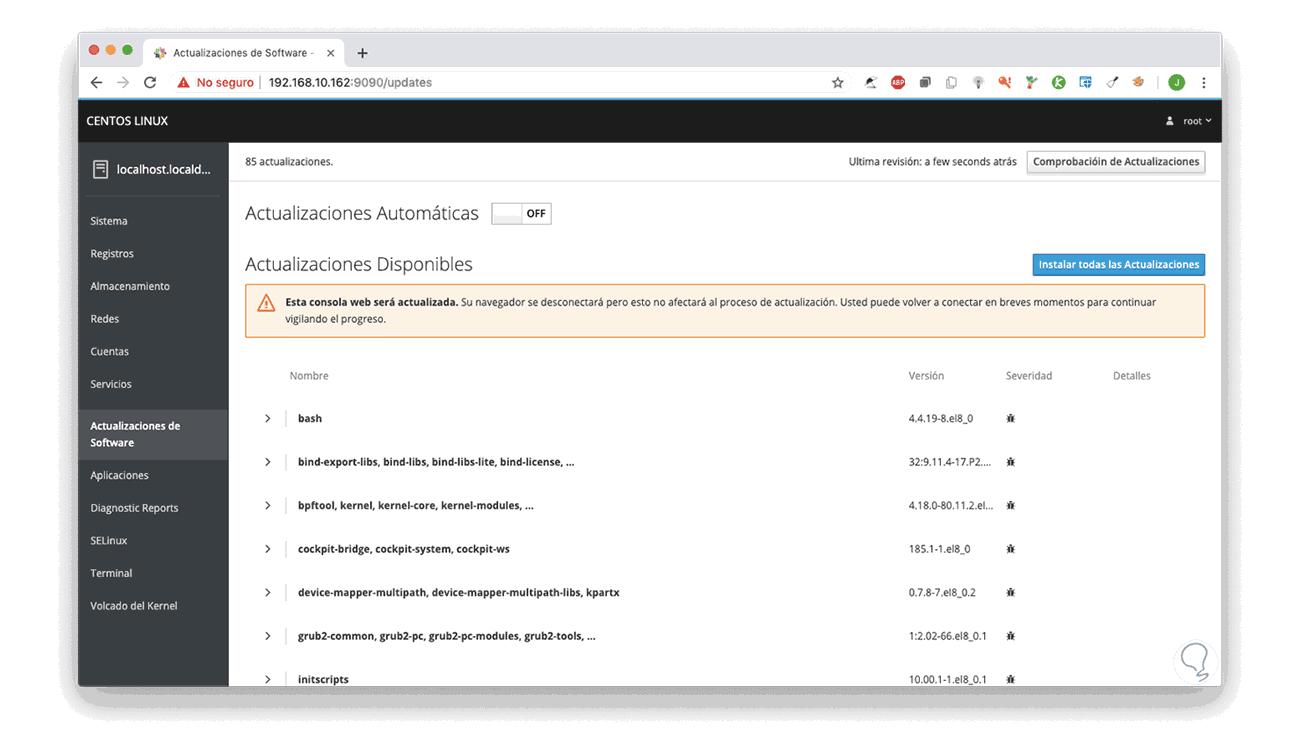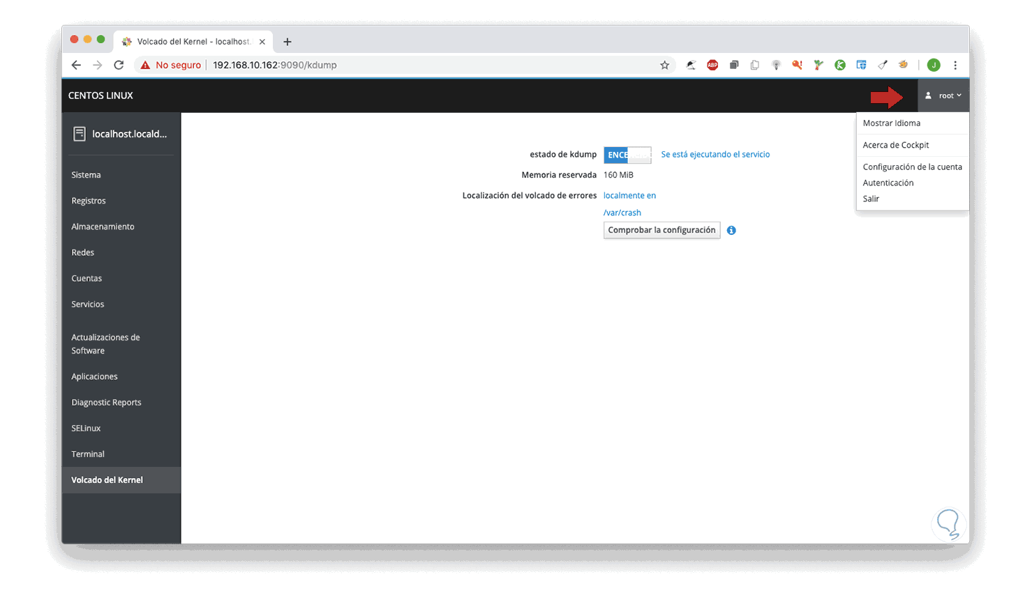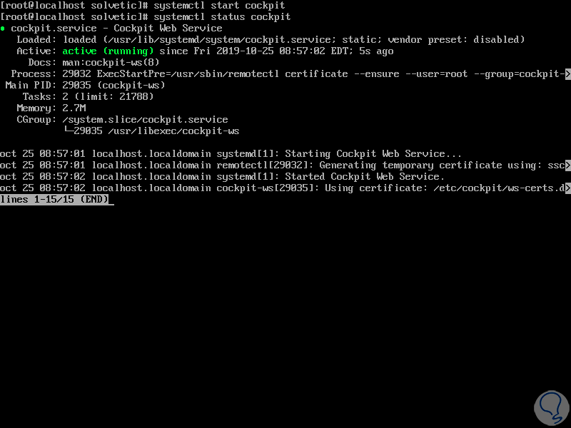 2. Iniciar y ver estado del servicio Cockpit en CentOS 8
