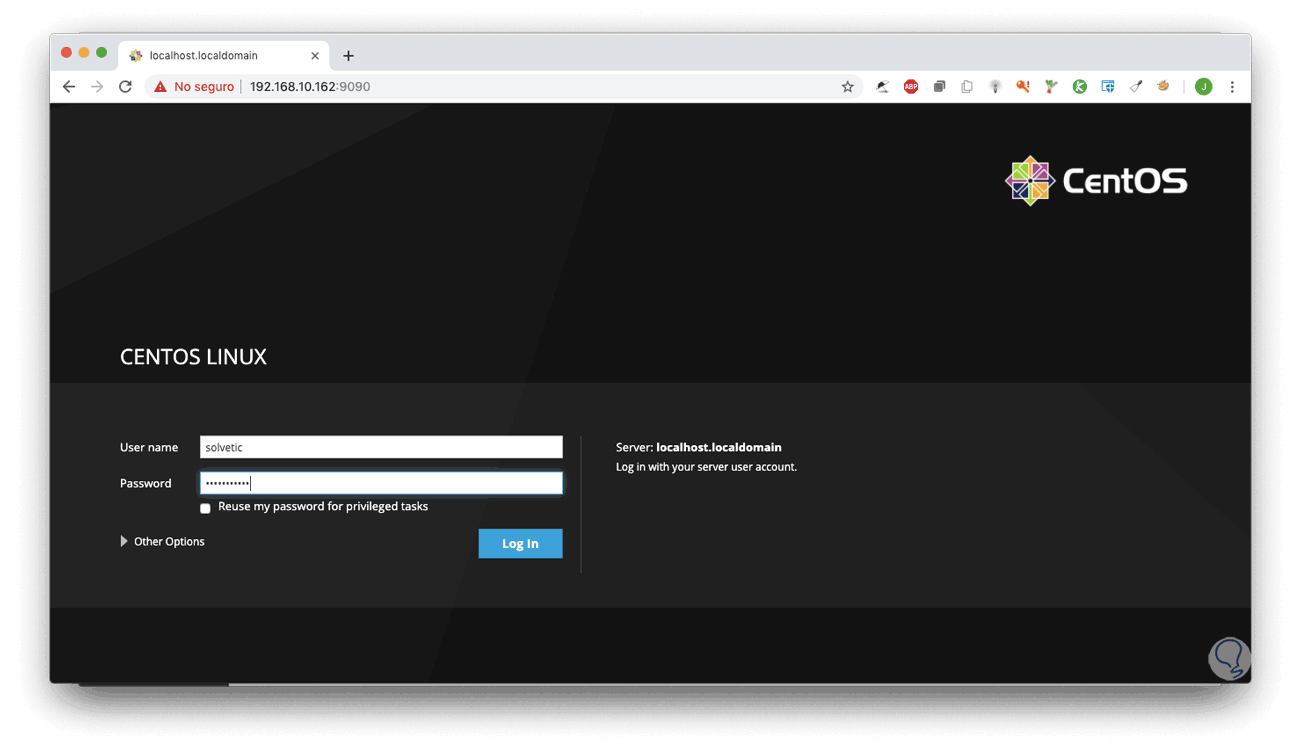 Configurado esto, podemos acceder a Cockpit ya sea de forma local o remota ejecutando la siguiente sintaxis: