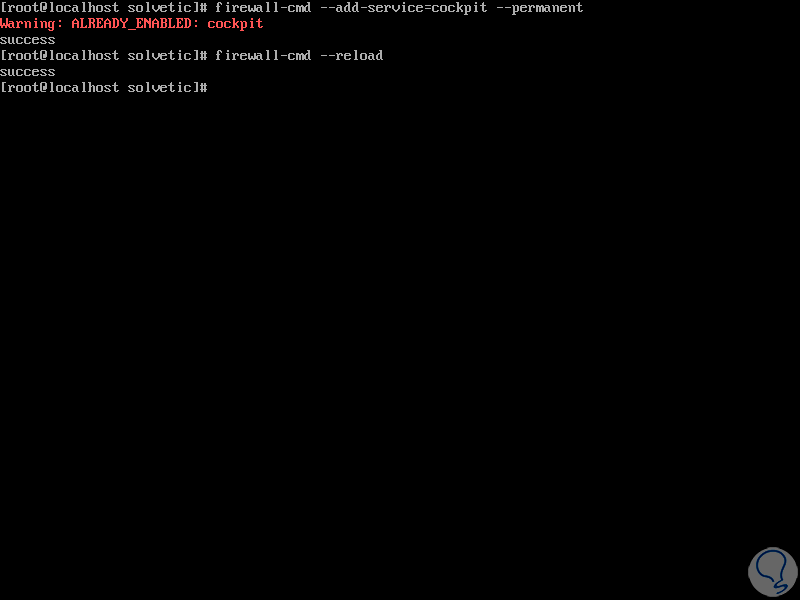 Una vez realicemos esto, vamos a configurar los permisos de acceso a Cockpit en Firewalld ejecutando lo siguiente: