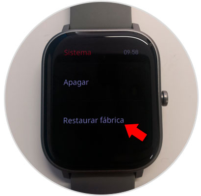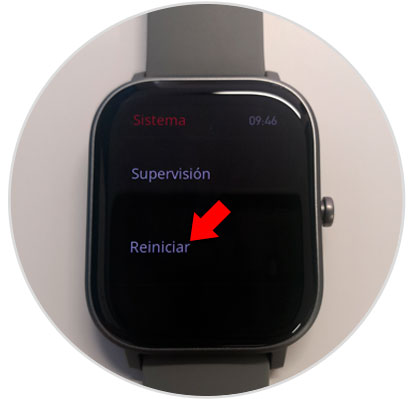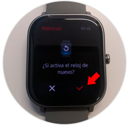 Verás el siguiente mensaje. Pulsa en el check para confirmar la acción y que se reinicie tu Amazfit GTS.