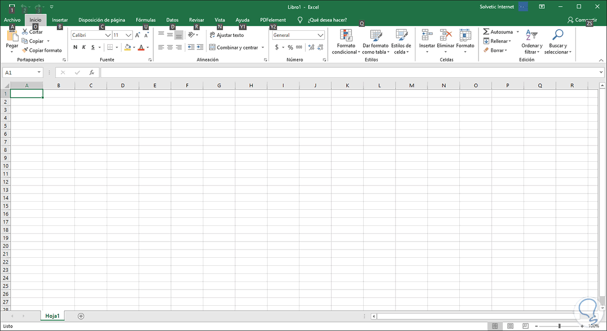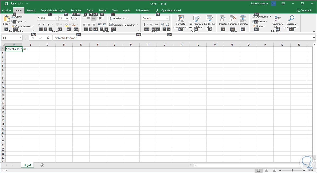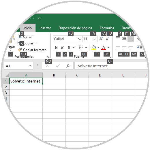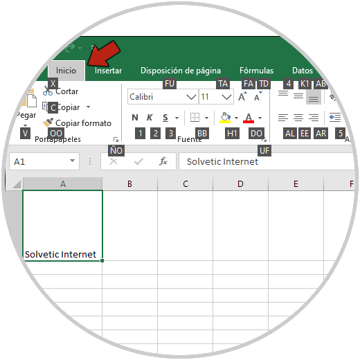 Ahora, si alguna de las filas de la hoja de cálculo esta mal distribuida, podemos ajustar su alto con el teclado usando la tecla Alt y luego la tecla O para ir al menú Inicio: