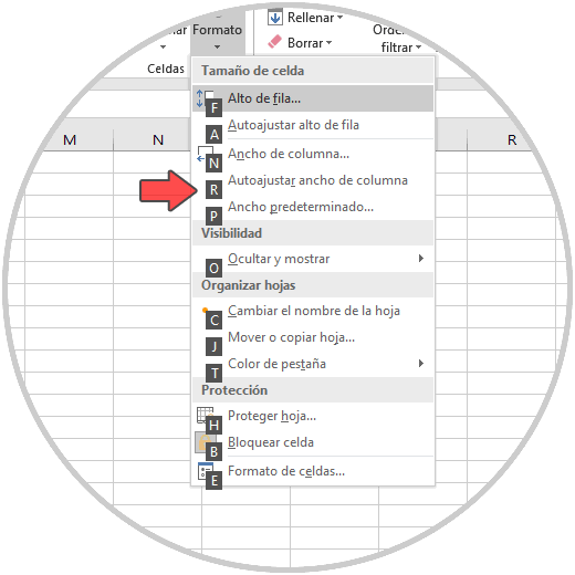 Finalmente pulsamos la tecla R para ajustar de forma automática el ancho de columna en la hoja de Excel: