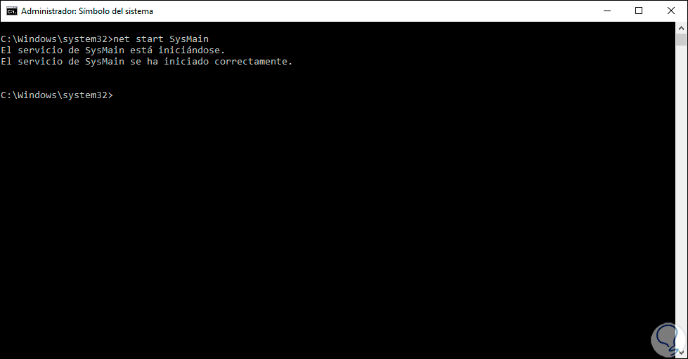 2. Activar servicio SysMain desde Símbolo de Sistema de Windows 10