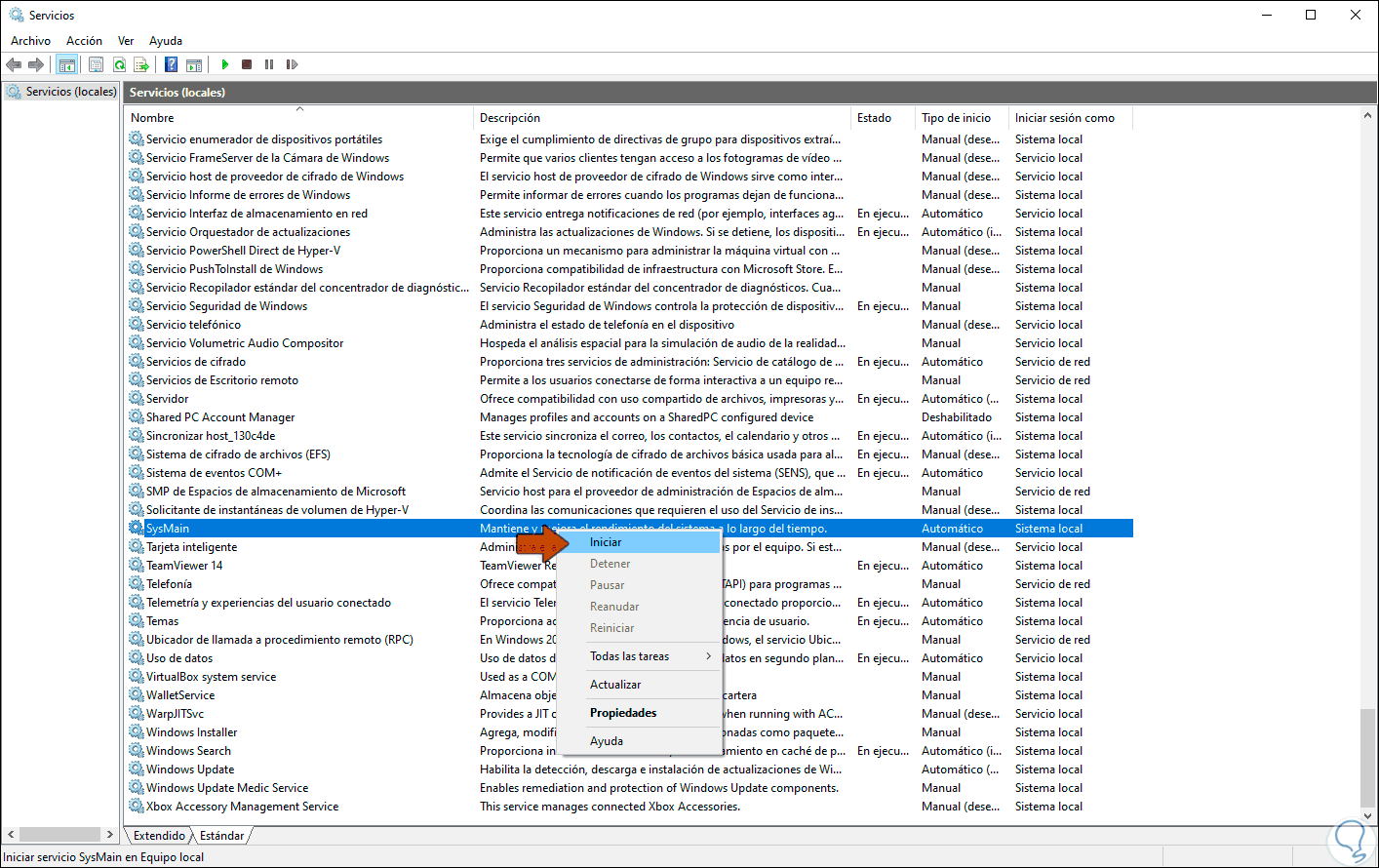 1. Activar servicio SysMain desde la consola de servicios de Windows 10