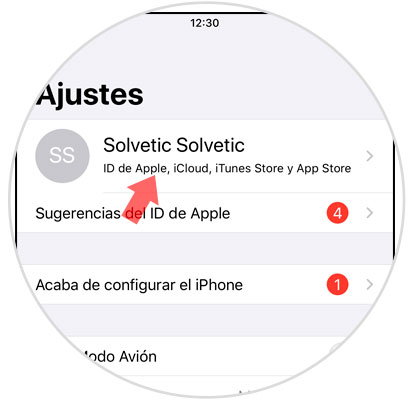 Ahora, en la parte superior verás tu nombre de ID de Apple. Pulsa aquí para entrar en las diferentes opciones.
